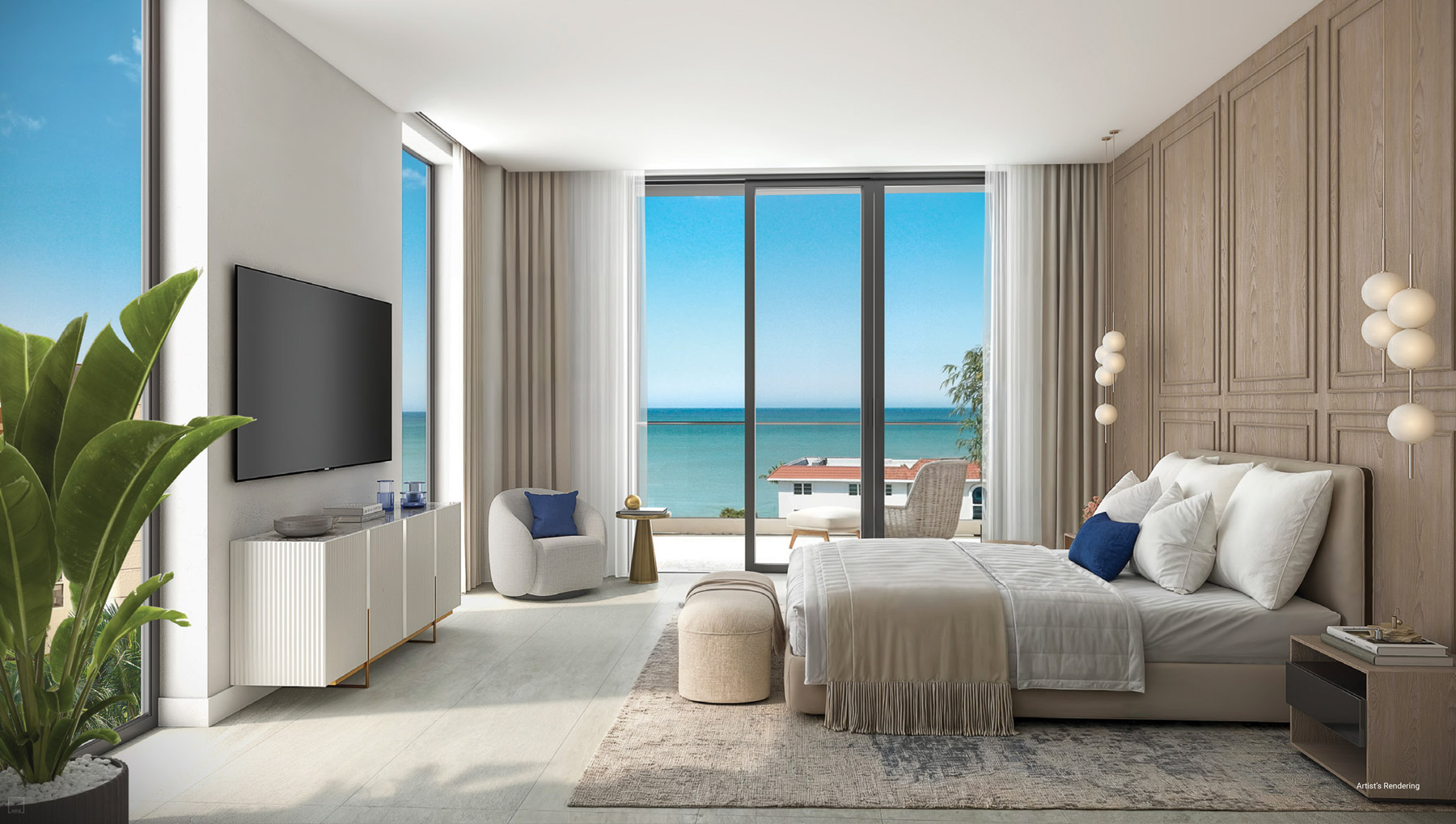 Interiors are crafted with high-end cabinetry, premium stone and tile surfaces, luxury appliance packages, and large expanses of glass to maximize views. Buyers will have opportunities to personalize finishes through developer programs.
